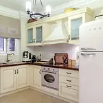 De 4-slaapkamer Villa Marina beschikt over een complete keuken met een waterkoker, een koelkast en een oven.